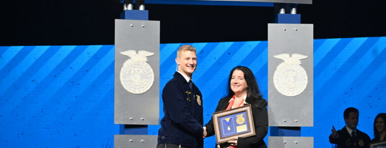 Lanie received the award during the 98th National FFA Convention & Expo in Indianapolis on Friday, October 31, 2025. Recipients are honored with a plaque and medal, and their names are permanently recorded as recipients of FFA’s highest honor.